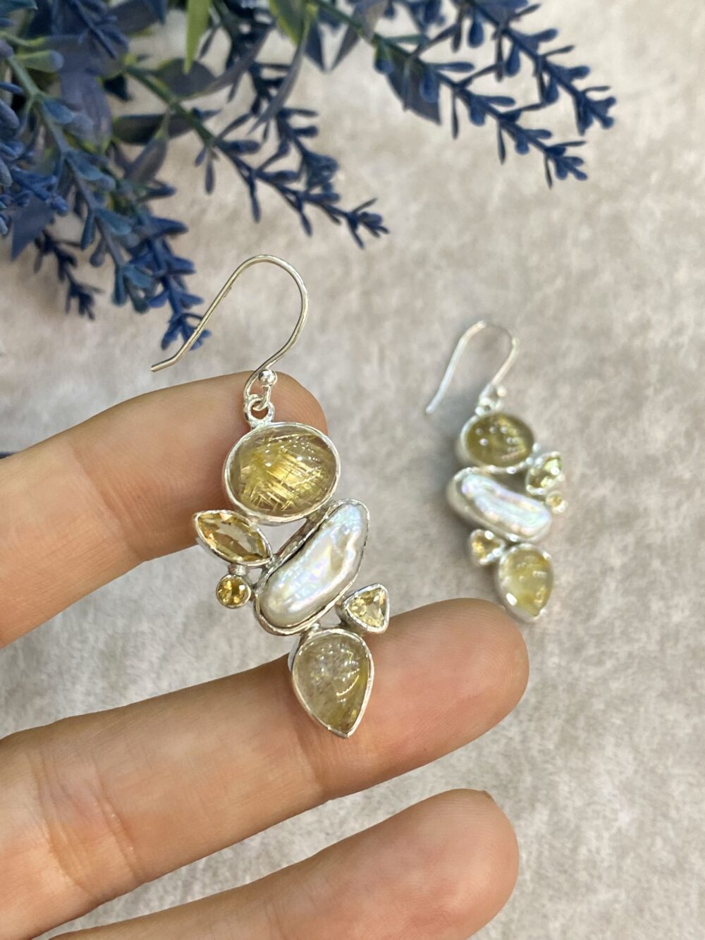 Rutilli Kuvars – İnci Doğal Taş Gümüş Küpe