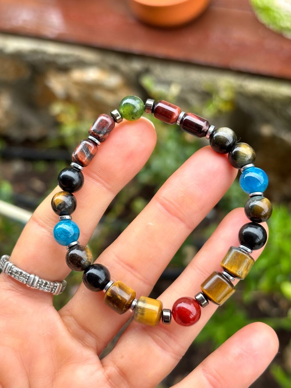 Kaplangözü – Akik – Yeşim – Apatit – Obsidyen Mix Doğal Taş Bileklik
