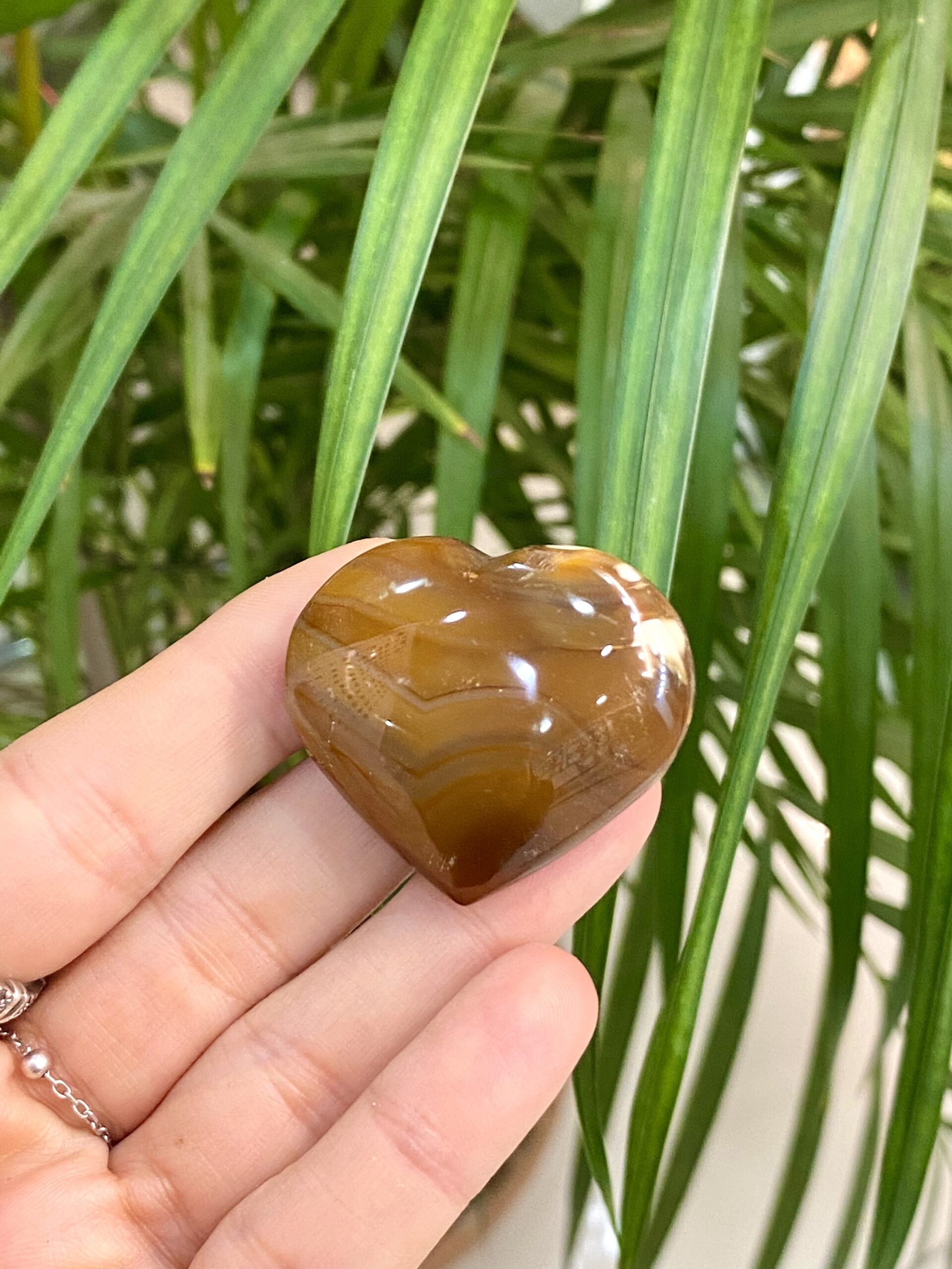 Akik taşı, dünyada milyonlarca yıldır oluşan volkanik kayaların boşluklarında kristalleşen bir mucizedir. Özellikle Brezilya, Uruguay ve Hindistan’da sıkça bulunan bu doğal taş, kendine has enerji ve renkleriyle dikkat çeker. Kalp şeklinde işlenmiş bu benzersiz akik taşı obje, evinizde ya da ofisinizde bulundurmak isteyeceğiniz eşsiz bir aksesuar!