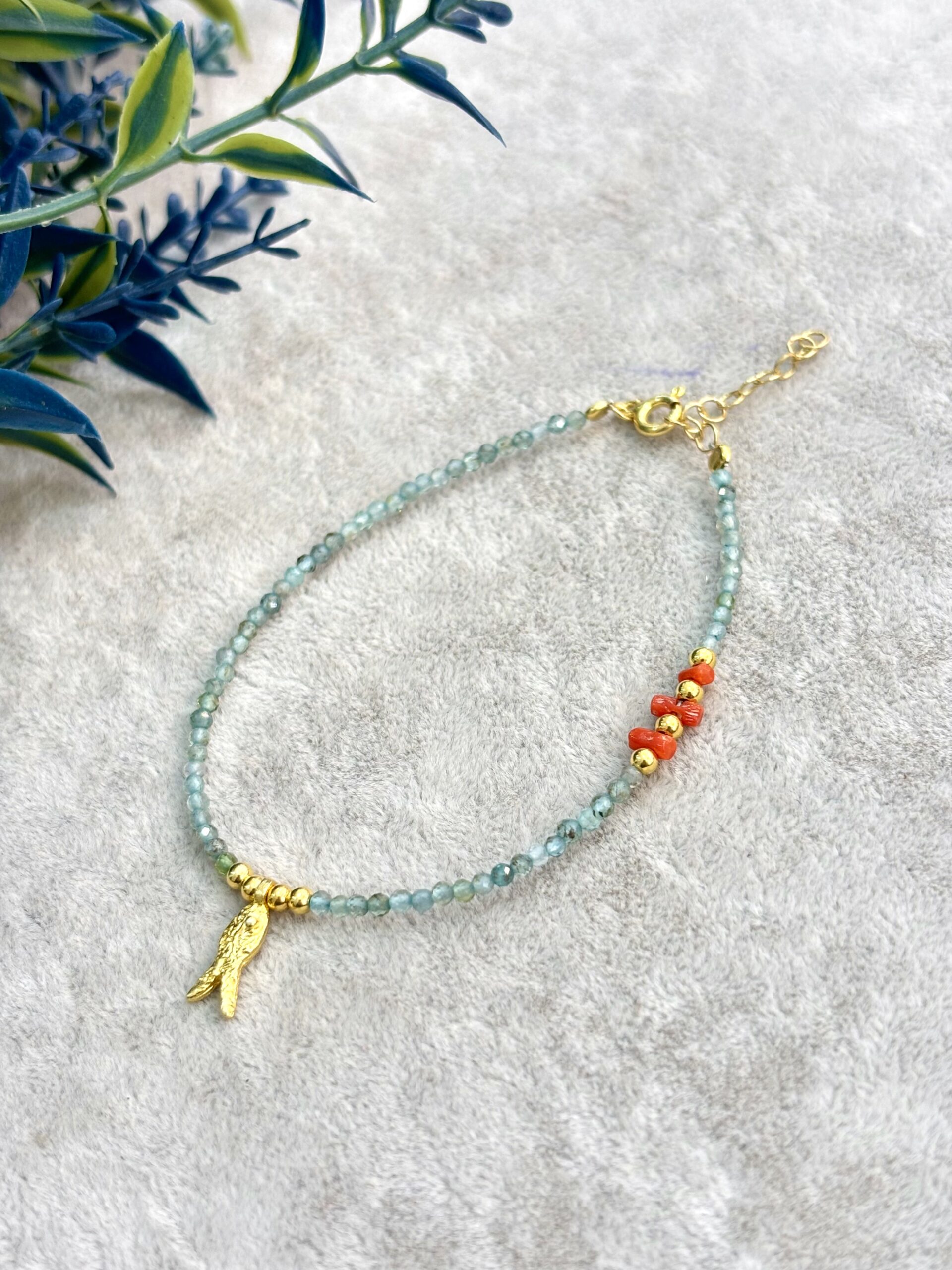 Akuamarin ve Mercan Doğal Taş Gümüş Bileklik