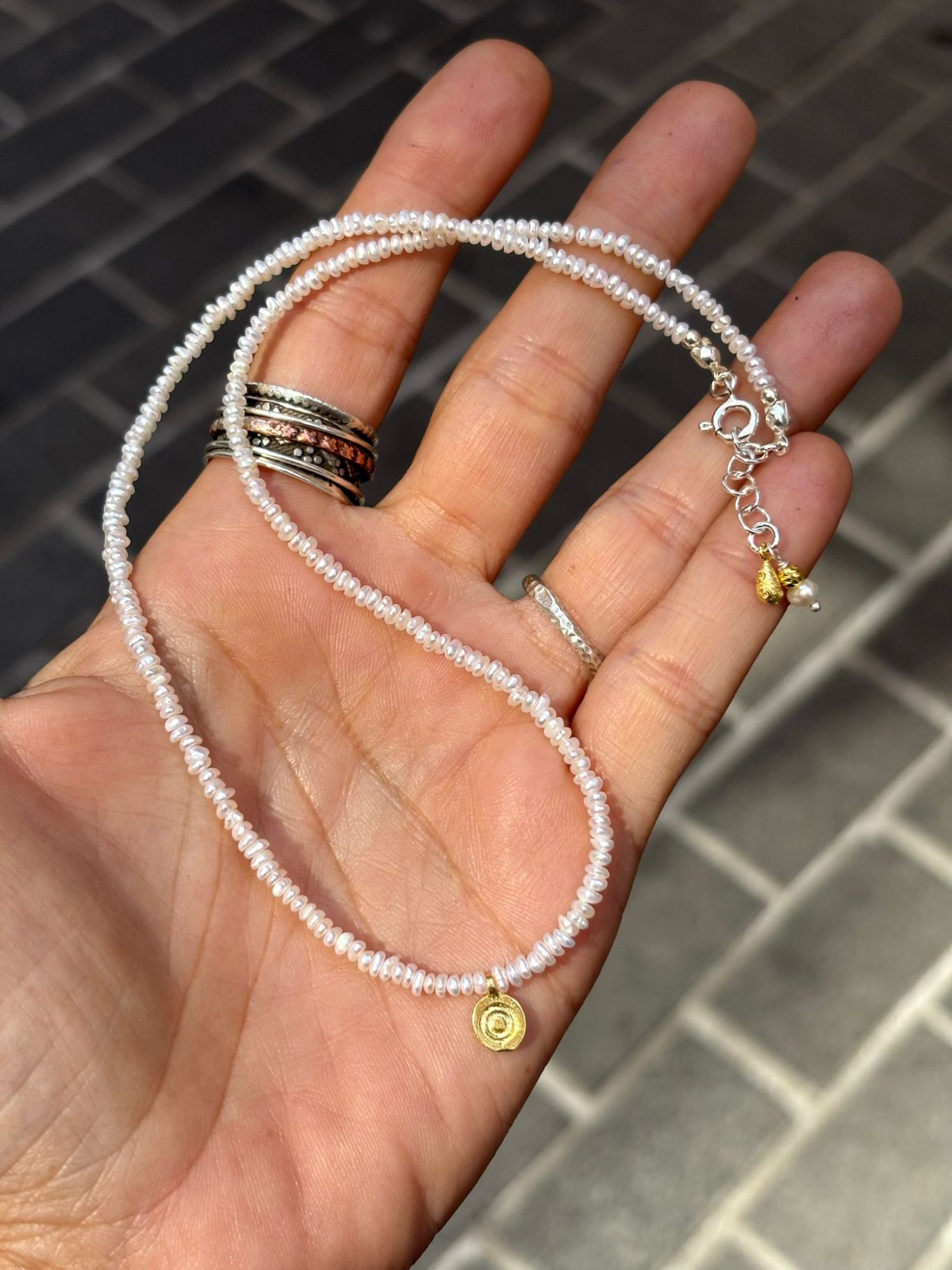 Bu göz alıcı kolyeyi kendi ruhsal yolculuğunuzda bir rehber olarak kullanabilir veya sevdiklerinize unutulmaz bir hediye olarak armağan edebilirsiniz. Her bir inci tanesi ve spiral sembolü, iç huzuru ve dengeyi destekleyen bir tasarıma sahiptir. Ruhani ve estetik olarak benzersiz bu parçayı hemen keşfedin ve ışığınızı parlatın!