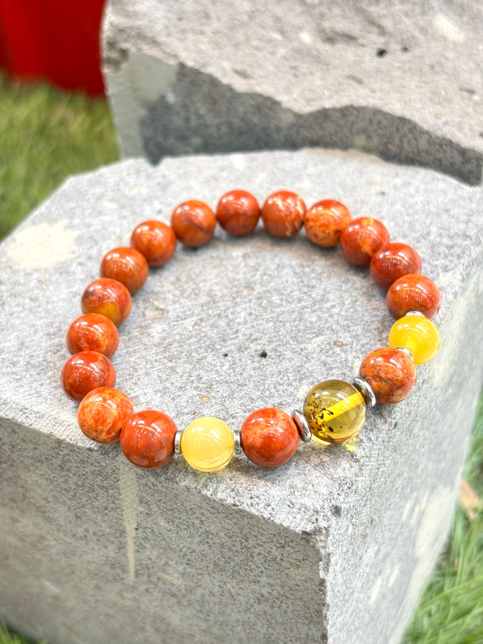 Jasper ve Kehribar’ın eşsiz uyumunu taşıyan bu doğal taş bileklik, enerjinizi dengeleyerek çevrenize pozitif titreşimler yaymanıza yardımcı olur. Hem stilinizi hem ruhsal sağlığınızı destekleyecek bu takı, doğal taşların binlerce yıllık etkileyici geçmişini bileğinize taşır.