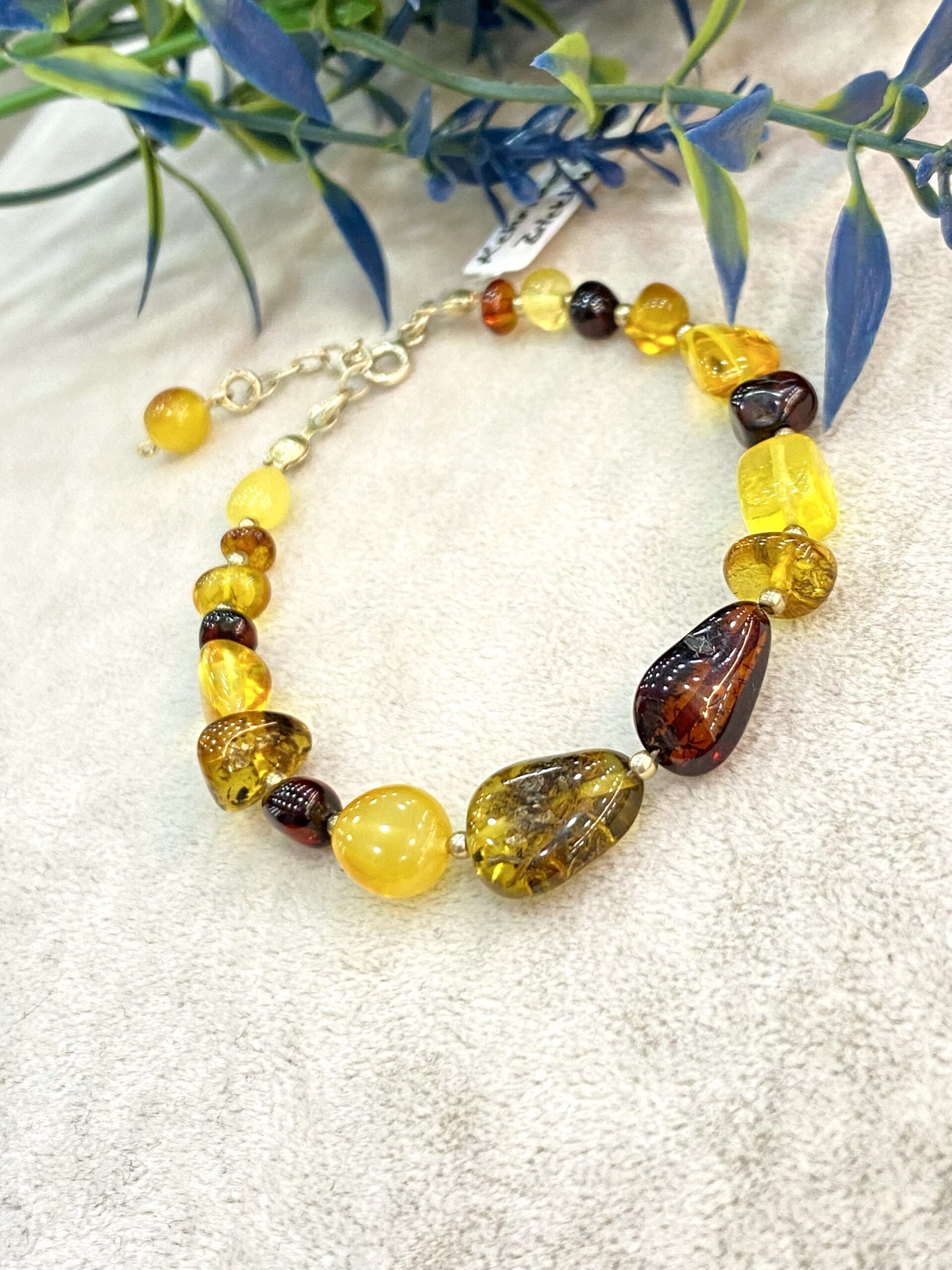 Şıklık ve Enerji Bir Arada – Kehribar Doğal Taş Gümüş Bileklik