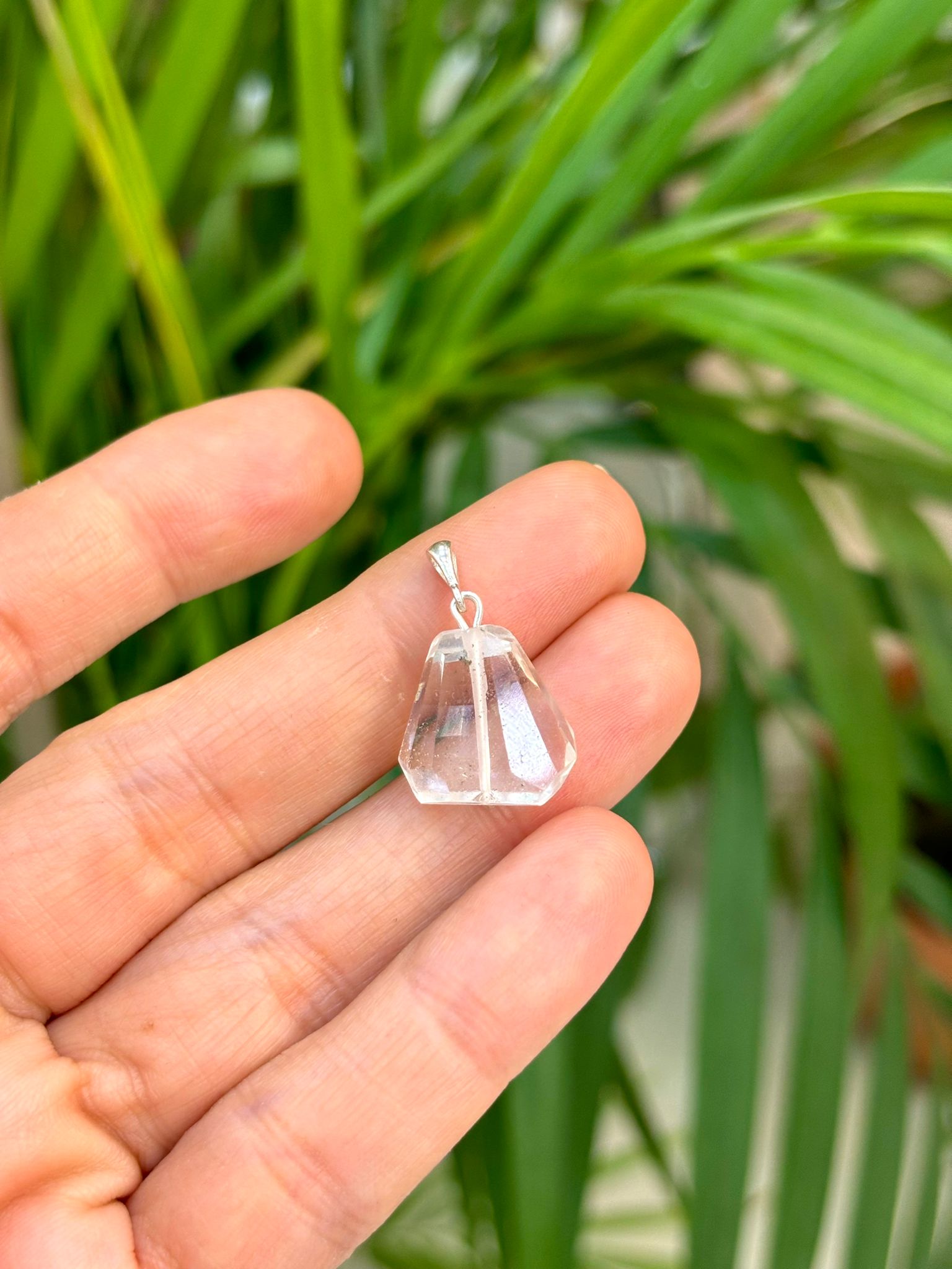 Kristal Kuvars Doğal Taş Gümüş Kolye Ucu