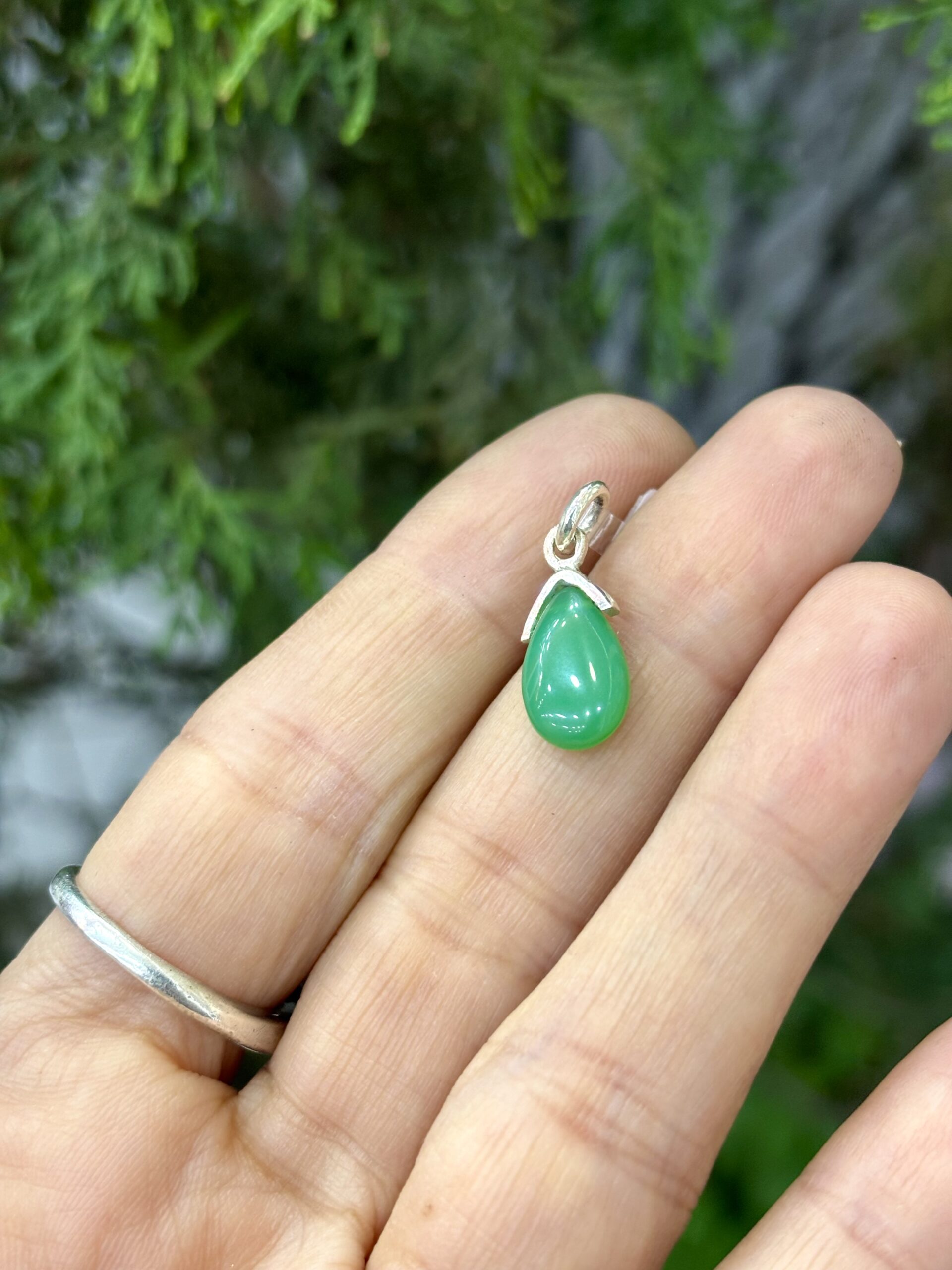 Krizopras Doğal Taş Gümüş Kolye Ucu
