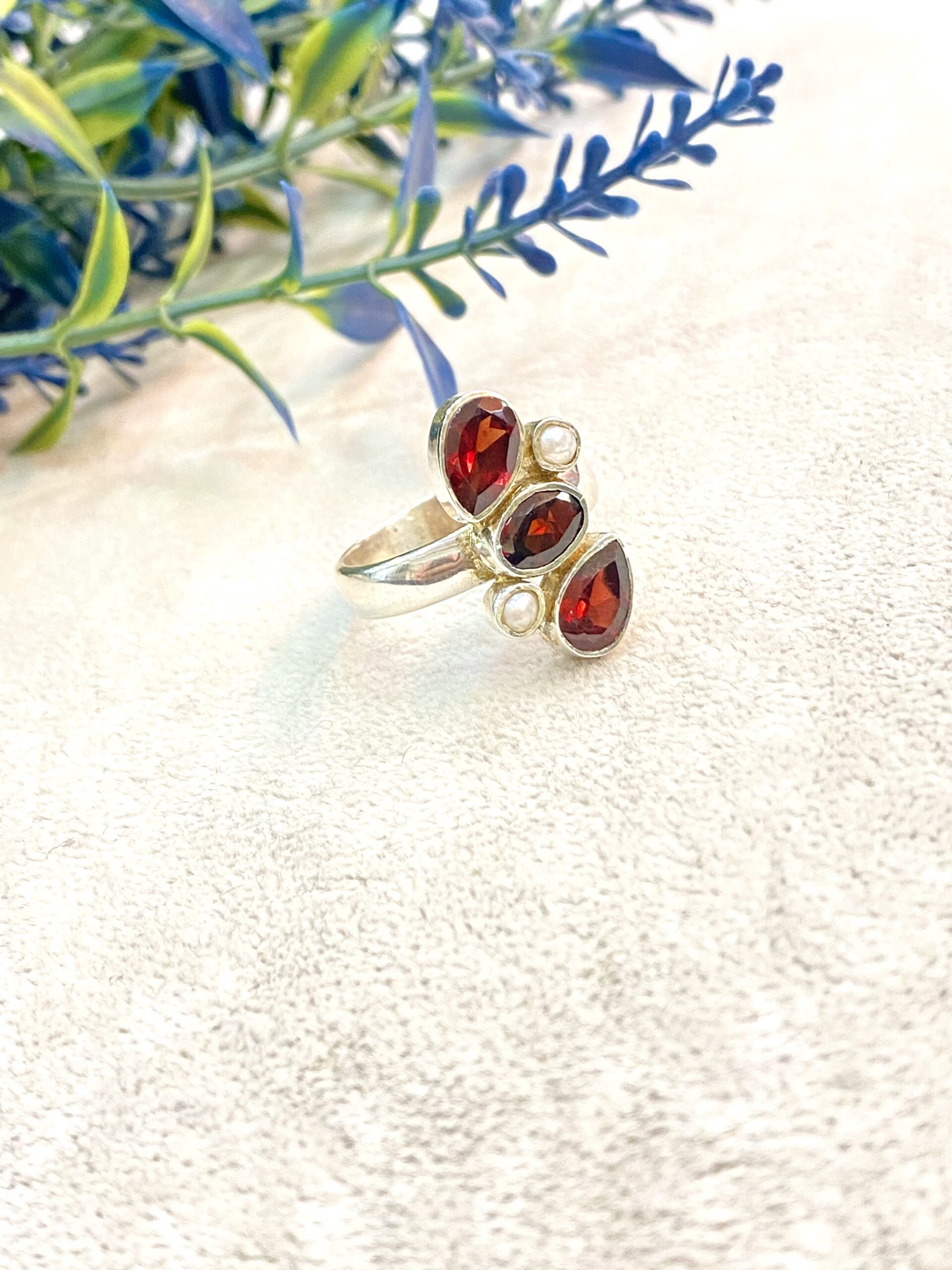 Lal – İnci Doğal Taş Gümüş Yüzük: Güzellik ve Şifa Bir Arada