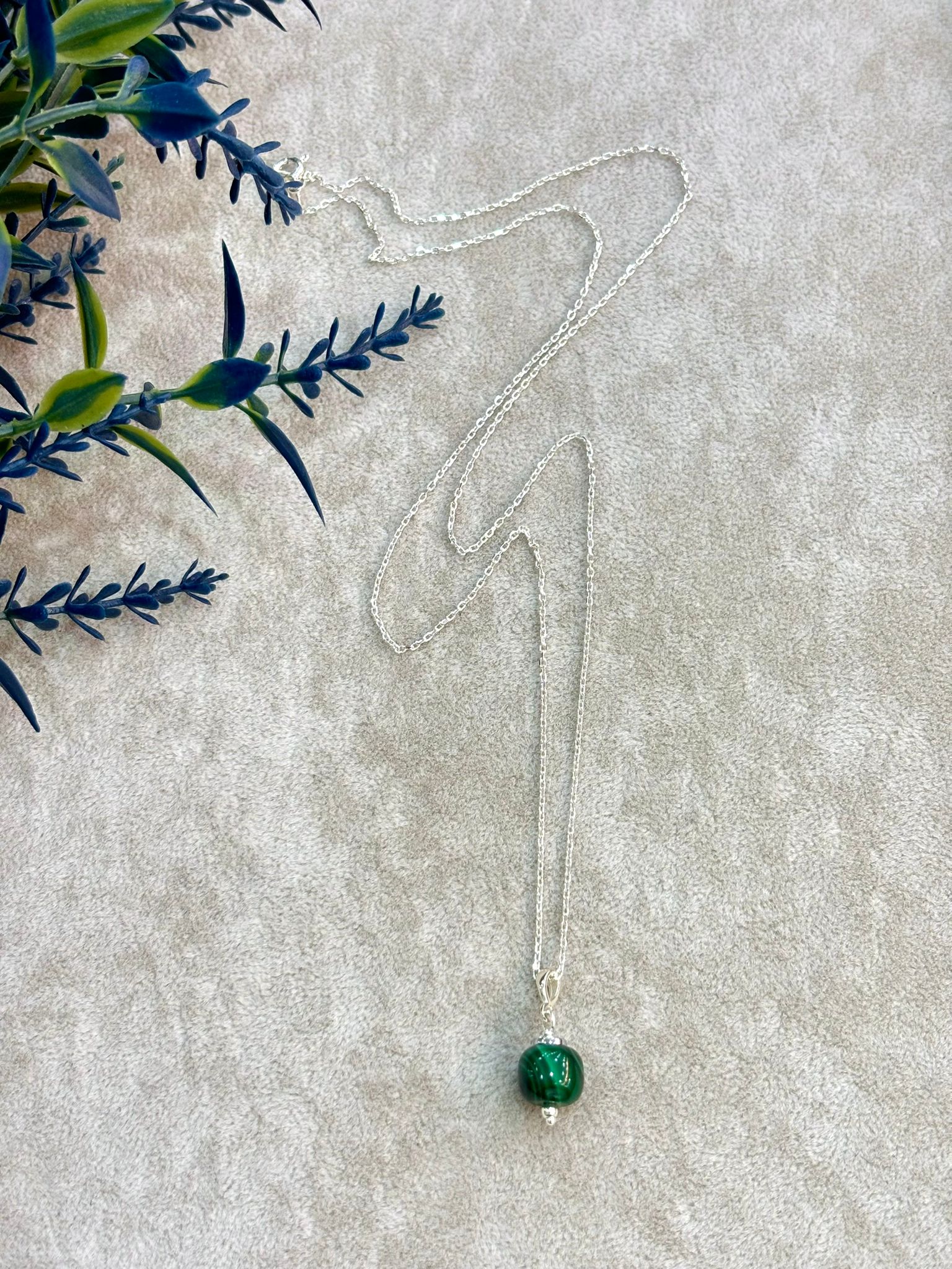 Malahit Doğal Taş Gümüş Kolye